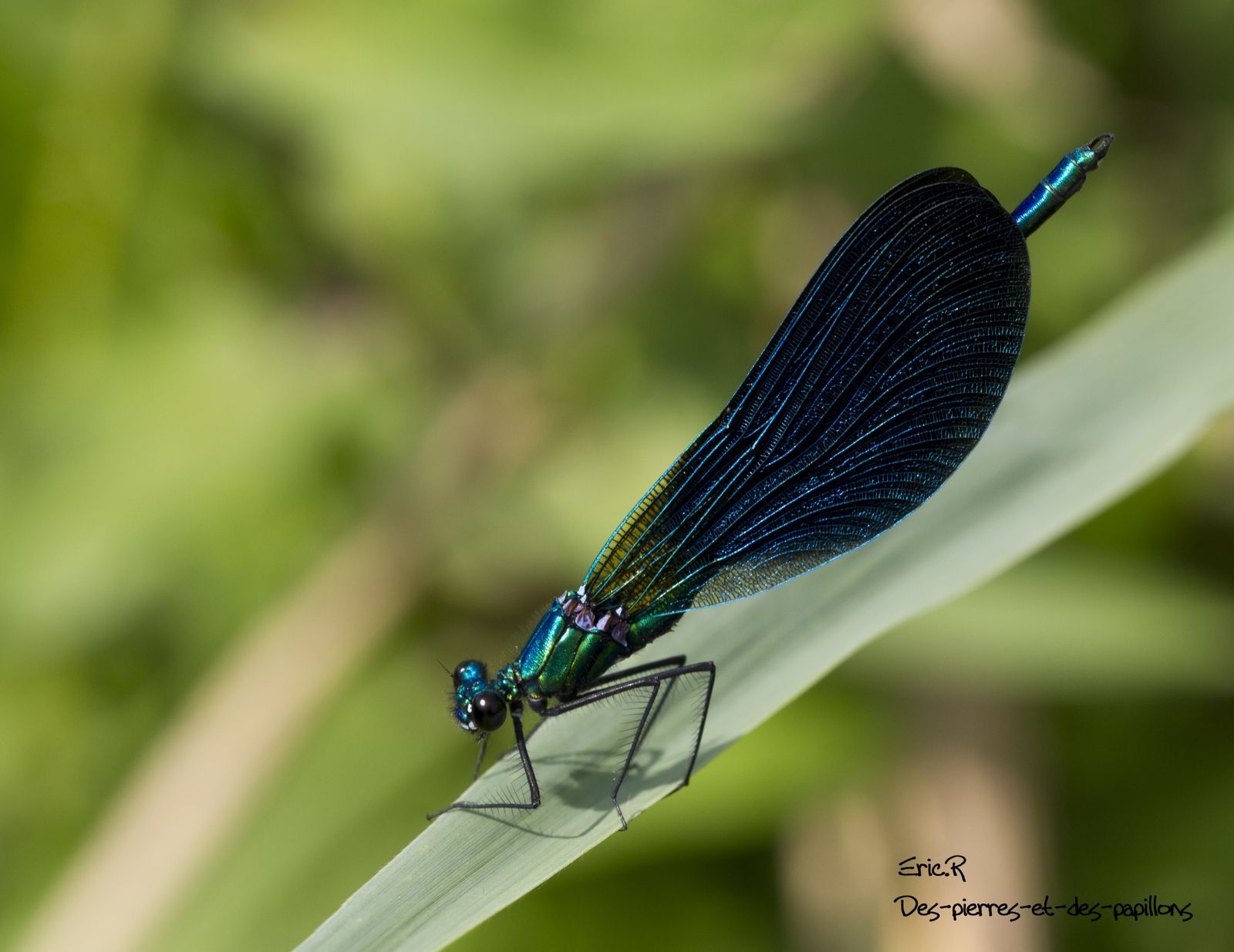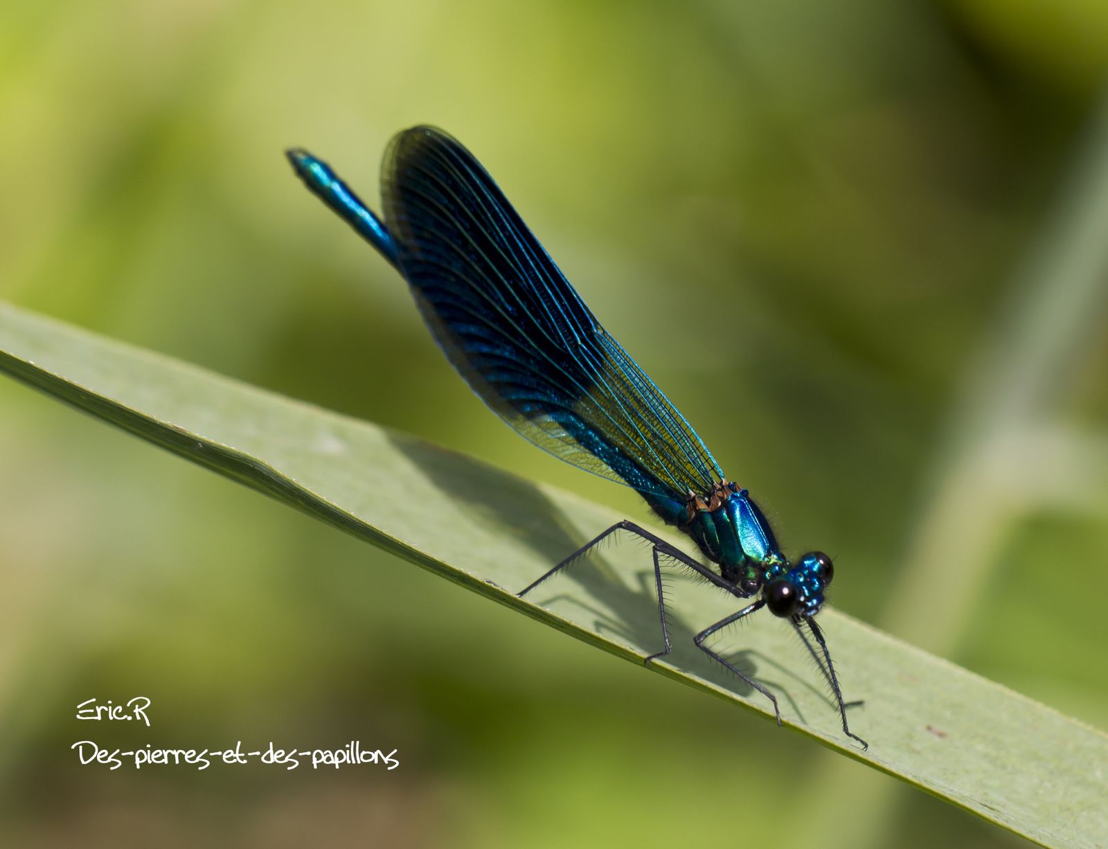 Caloptéryx éclatant - Calopteryx splendens, semblabale au caloptéryx vierge, avec des ailes bicolores.